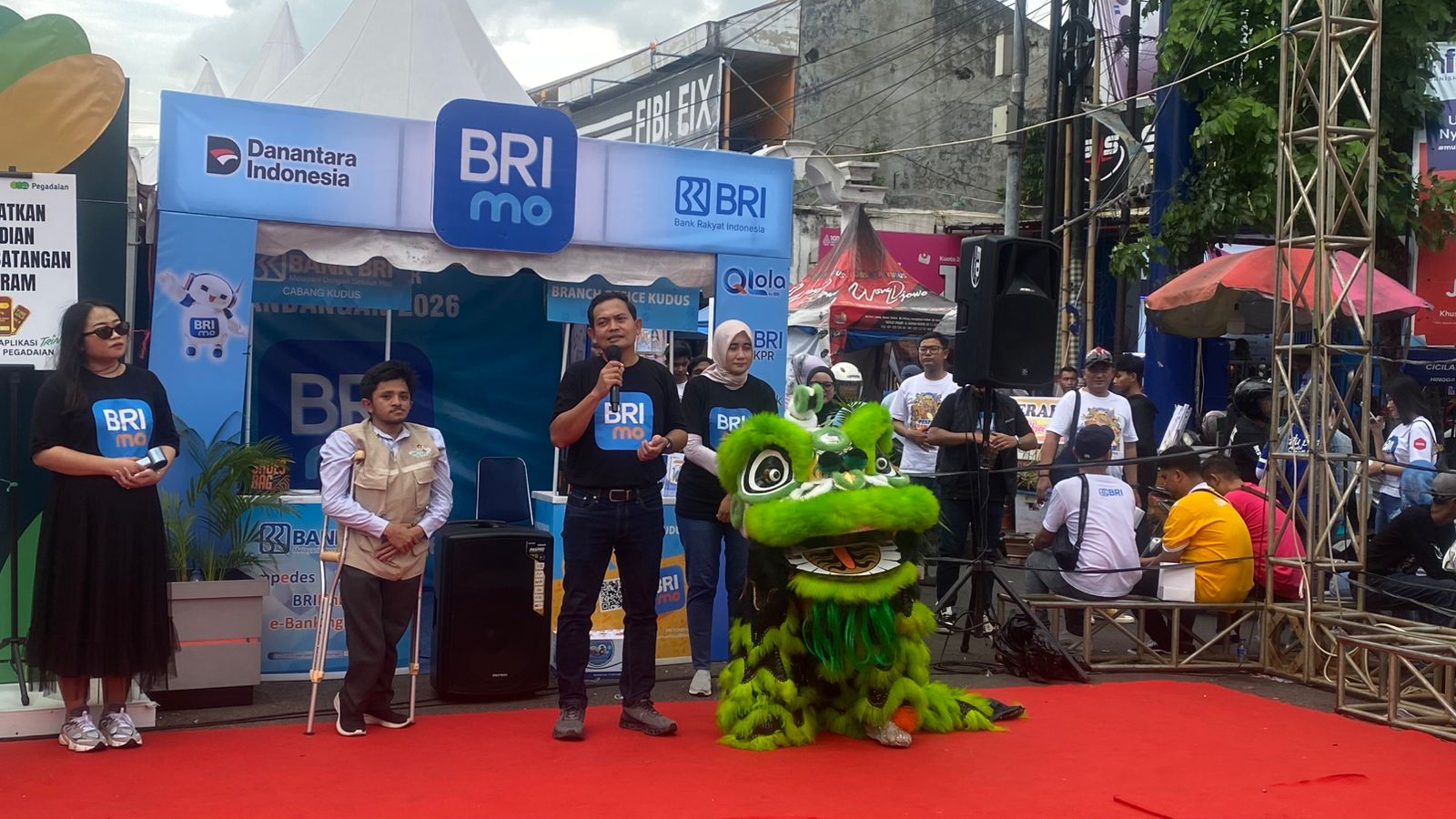 Salah satu yang menarik perhatian ribuan pengunjung pada sore hari ini adanya Karnaval barongsai yang digelar BRI Cabang Kudus pada Sabtu (14/2/2026) sore.