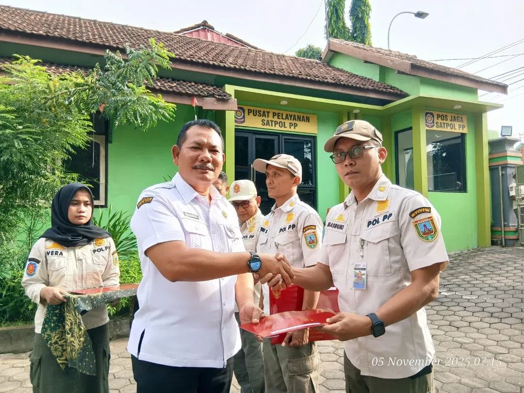 Kudus, Kaifanews.com – Satuan Polisi Pamong Praja (Satpol PP) Kabupaten Kudus menggelar apel pagi sekaligus penyerahan tanda kehormatan Satyalancana Karya Satya Tahun 2025 di halaman kantor Satpol PP, Selasa (5/11/2025). Dalam kegiatan tersebut, empat Pegawai Negeri Sipil (PNS) aktif dan satu pensiunan menerima penghargaan atas dedikasi dan pengabdian mereka selama bertugas.