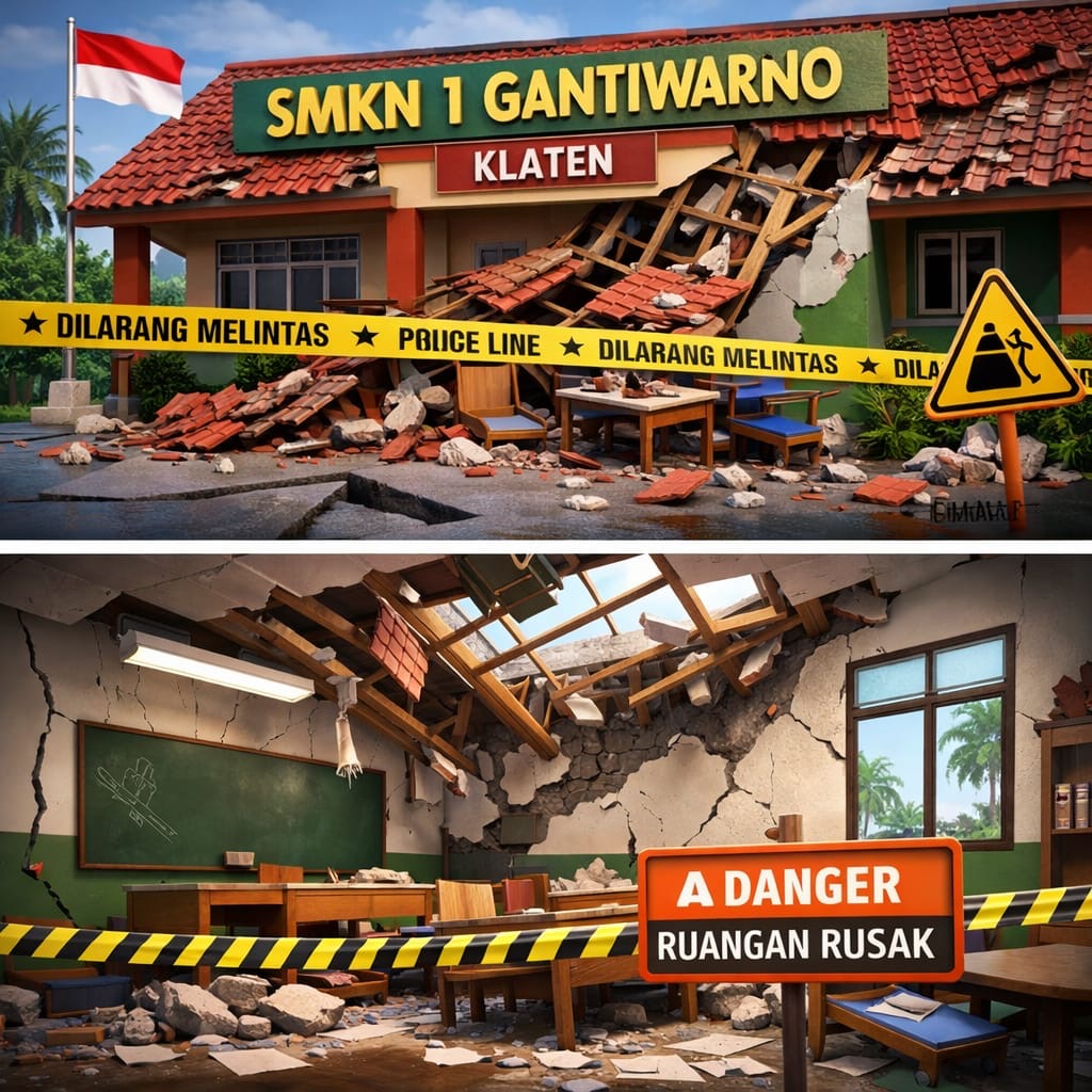 Salah satu fasilitas yang terdampak cukup serius adalah SMKN 1 Gantiwarno, Klaten. Kerusakan terlihat pada beberapa ruang kelas, dengan retakan pada dinding serta bagian atap yang jebol akibat kuatnya guncangan gempa.