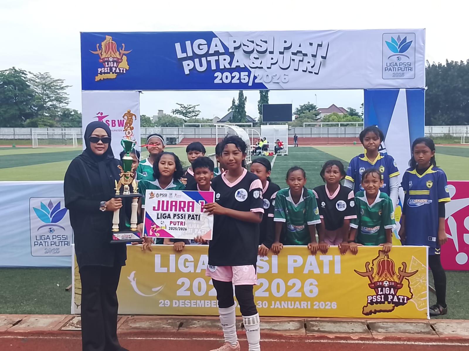 KUDUS, Kaifanews – Liga PSSI Putri U-15 yang digelar di Stadion Joyokusumo, Kabupaten Pati, resmi ditutup dengan kemenangan gemilang JAMKID FC (Jambean Kidul) Sabtu (27/12). Pada partai final, JAMKID FC sukses menundukkan Al Asyiq Pundenrejo dengan skor 2–0 dan memastikan diri sebagai juara pertama turnamen sepak bola putri kelompok usia 15 tahun tersebut.