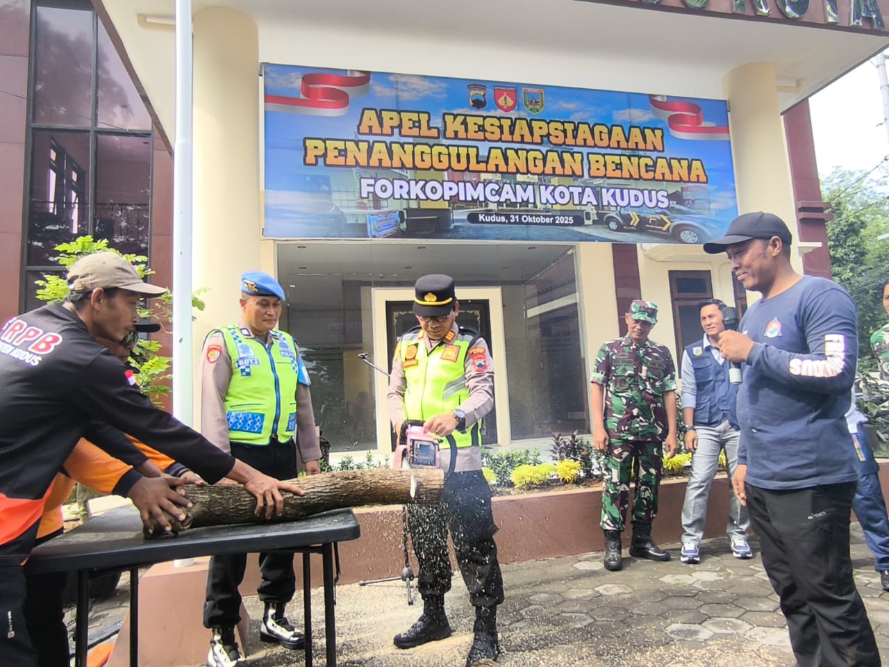 Kudus, Kaifanews.com — Menyambut datangnya musim penghujan, jajaran Forum Koordinasi Pimpinan Kecamatan (Forkopimcam) Kota Kudus menunjukkan kesiapsiagaan tinggi dalam menghadapi potensi bencana hidrometeorologi. Langkah nyata itu diwujudkan melalui Apel Kesiapsiagaan Tanggap Bencana Forkopimcam Kota Kudus Tahun 2025, yang digelar pada Jumat (31/10/2025) di halaman Mako Polsek Kudus Kota.