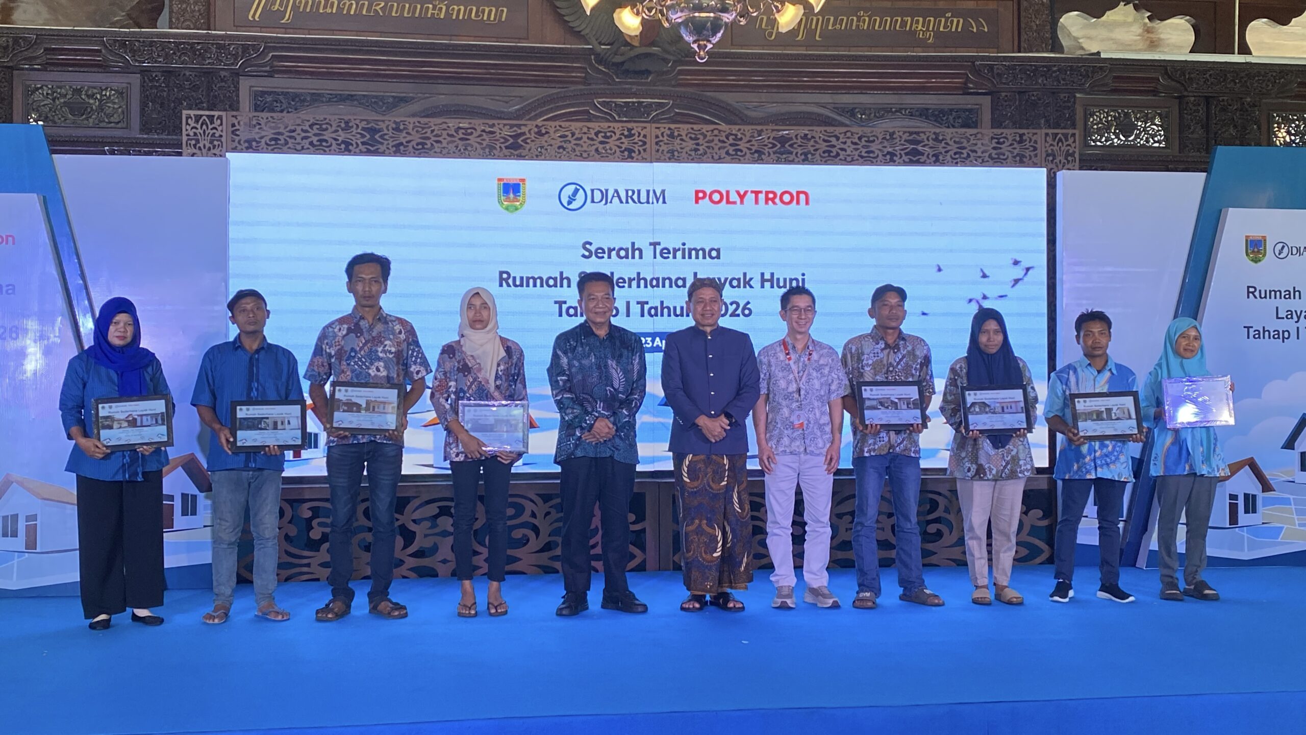 KUDUS, Kaifanews — Senyum haru terpancar dari puluhan warga saat bantuan Rumah Sederhana Layak Huni (RSLH) resmi diserahkan di Pendopo Kabupaten Kudus, Kamis, 23 April 2026. Program kolaborasi antara PT Djarum dan Polytron ini menghadirkan harapan baru bagi 128 keluarga penerima manfaat.