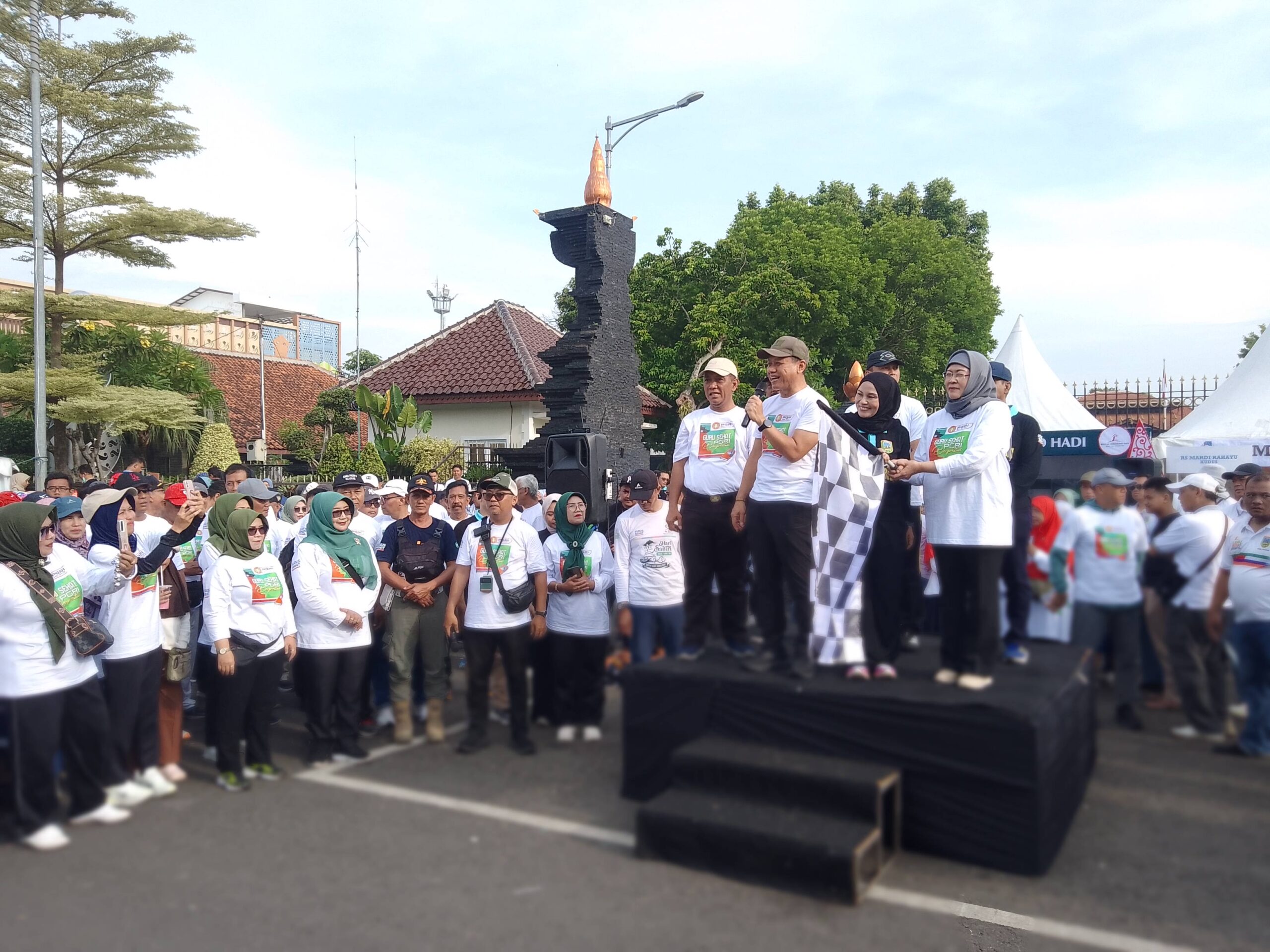 Acara Jalan Sehat PGRI Bersama Bupati dan Wakil Bupati Kudus dibuka dan diberangkatkan lansung oleh Bupati Kudus Sam’ani dengan didampingi perwakilan dari pengurus PGRI Jawa Tengah dan Ketua PGRI Kudus