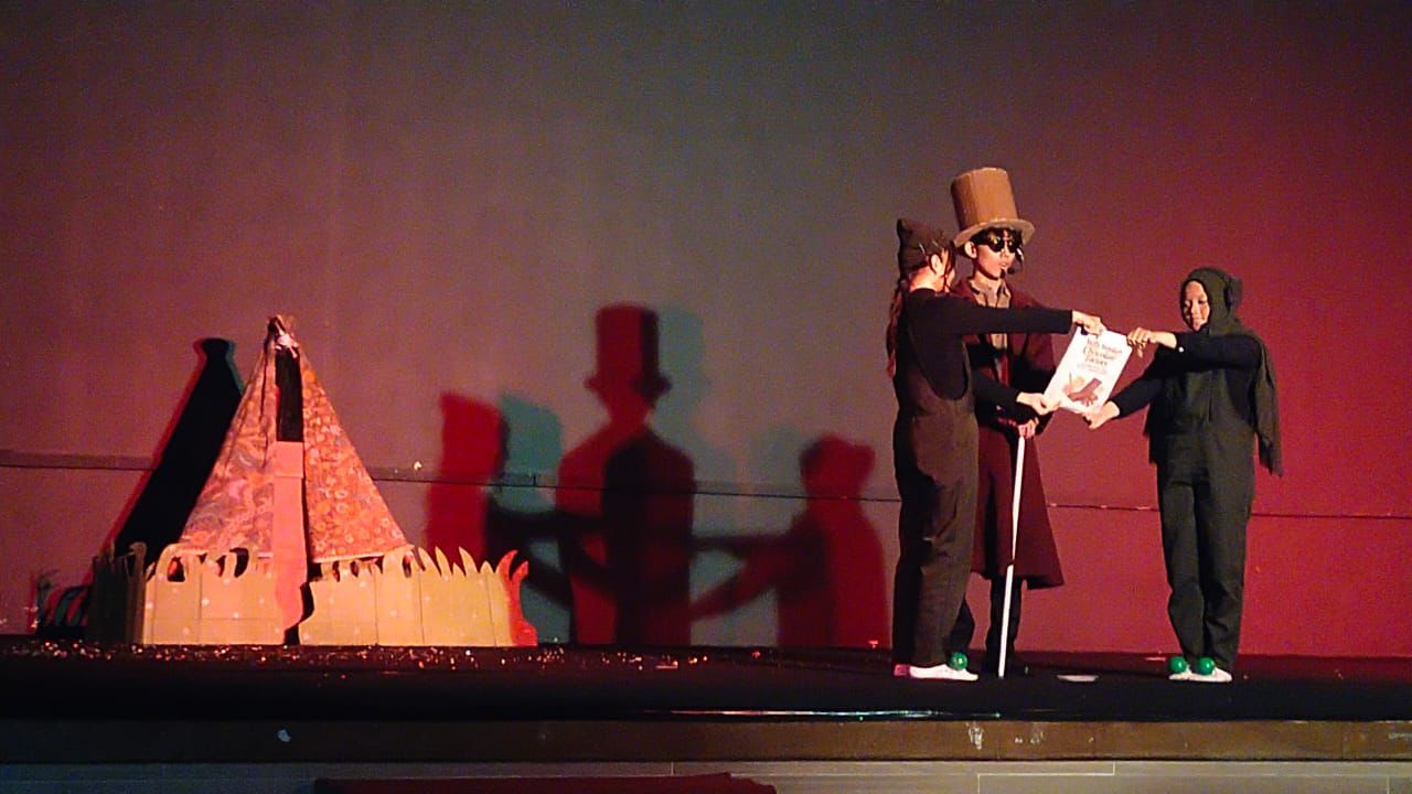 Para mahasiswa membaca buku cerita berjenjang (graded readers), mengadaptasinya menjadi naskah, lalu menghidupkannya lewat akting dan dialog di atas panggung.